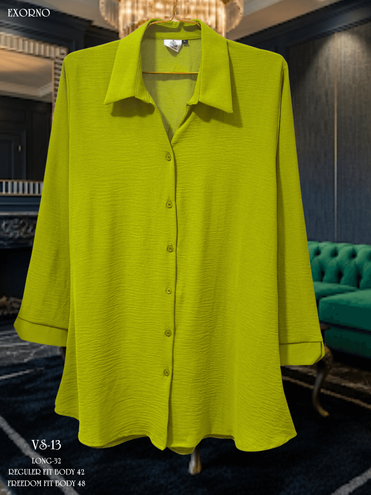 Bring a burst of energy to your wardrobe with the Emerald Breeze V-Neck Longline Shirt. Designed in a 32-inch longline cut, this parrot green shirt combines vibrant color with modest elegance. Perfect for casual outings, day events, or layered evening looks, it’s a versatile piece that instantly refreshes any outfit.