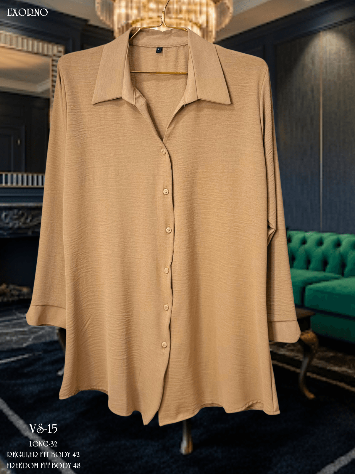 Rich Brown V-Neck Long Shirt – Modest & Stylish