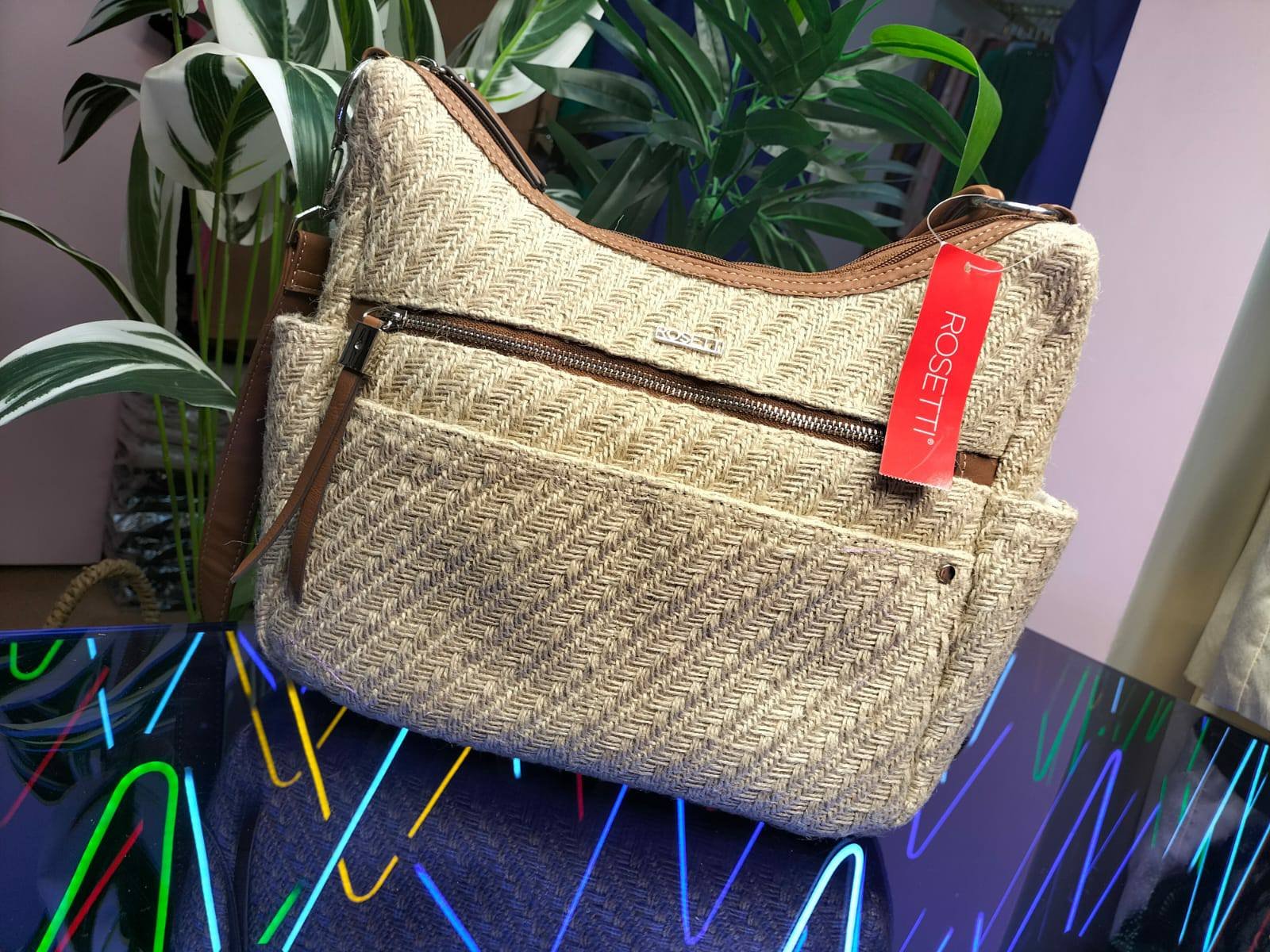 Rosetti Woven Fabric Hobo Bag with Faux Leather Trim
