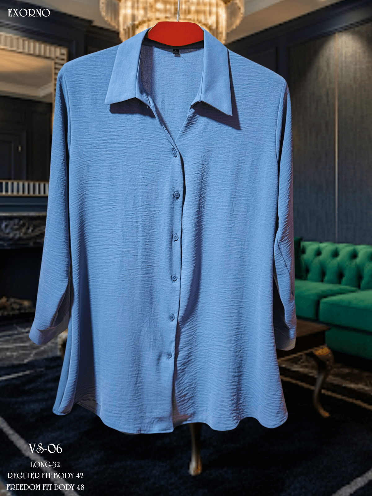 Embrace calm elegance with the Sky Whisper V-Neck Longline Shirt. Designed in a 32-inch longline cut, this powder blue shirt offers the perfect balance of modesty and modern flair. Whether you’re dressing for a casual day out or styling for a refined evening, this versatile piece adds a soft, sophisticated touch to any outfit.