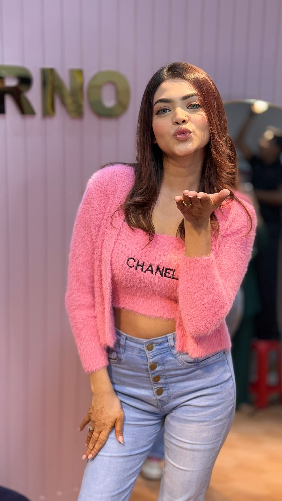 Indulge in cozy charm with our Peachy Pink Fluffy Knit Set. This delightful matching cropped cardigan and camisole are crafted from super-soft yarn, creating a warm and playful aesthetic. Perfect for a cute, comfortable, and on-trend look.