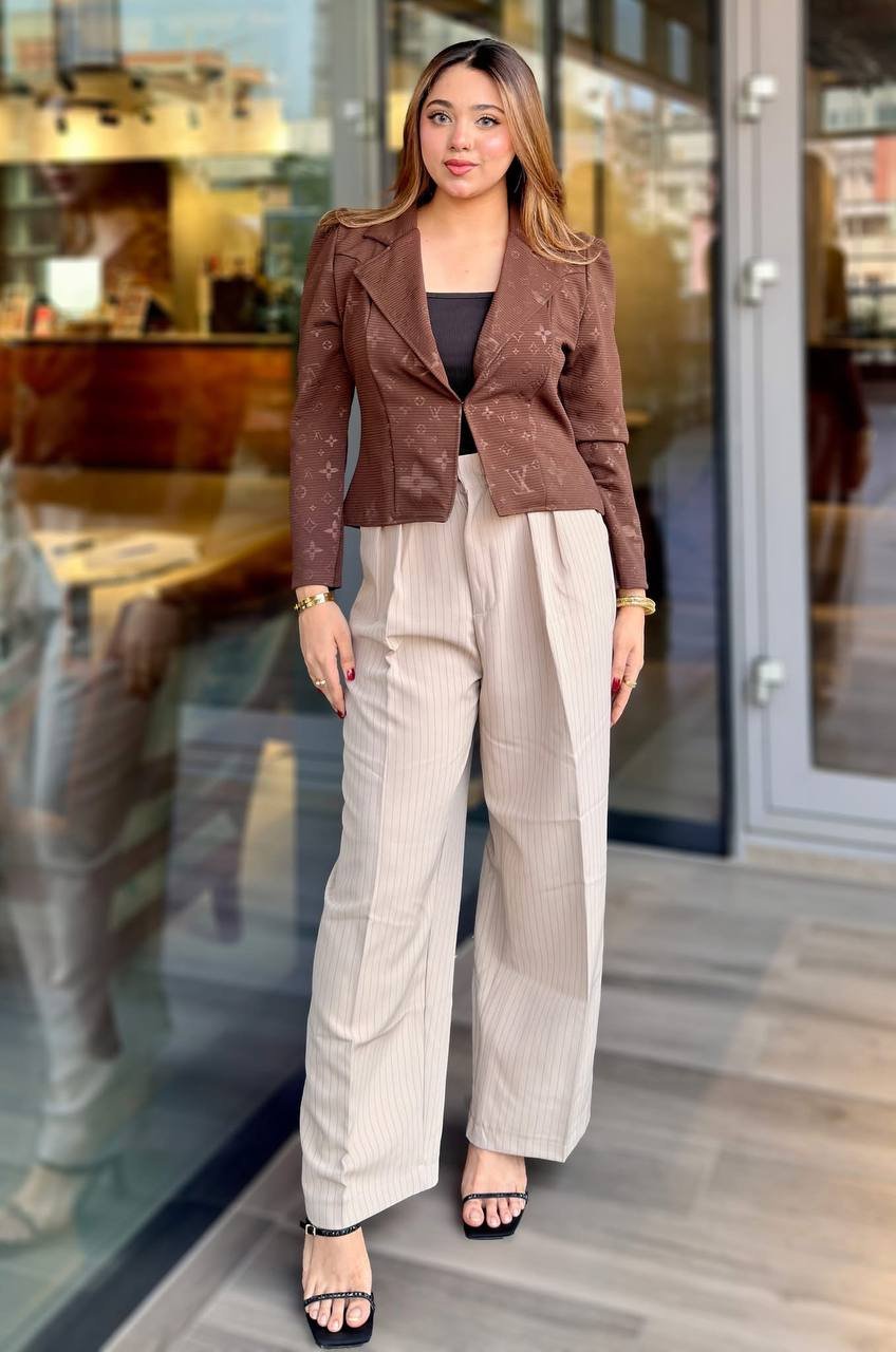 Product Description: A statement piece for the modern wardrobe. This short coat features an intricate all-over pattern and a sharp, cropped cut. Designed with a structured shoulder and a lightweight feel, it’s the ideal layering piece for any season.